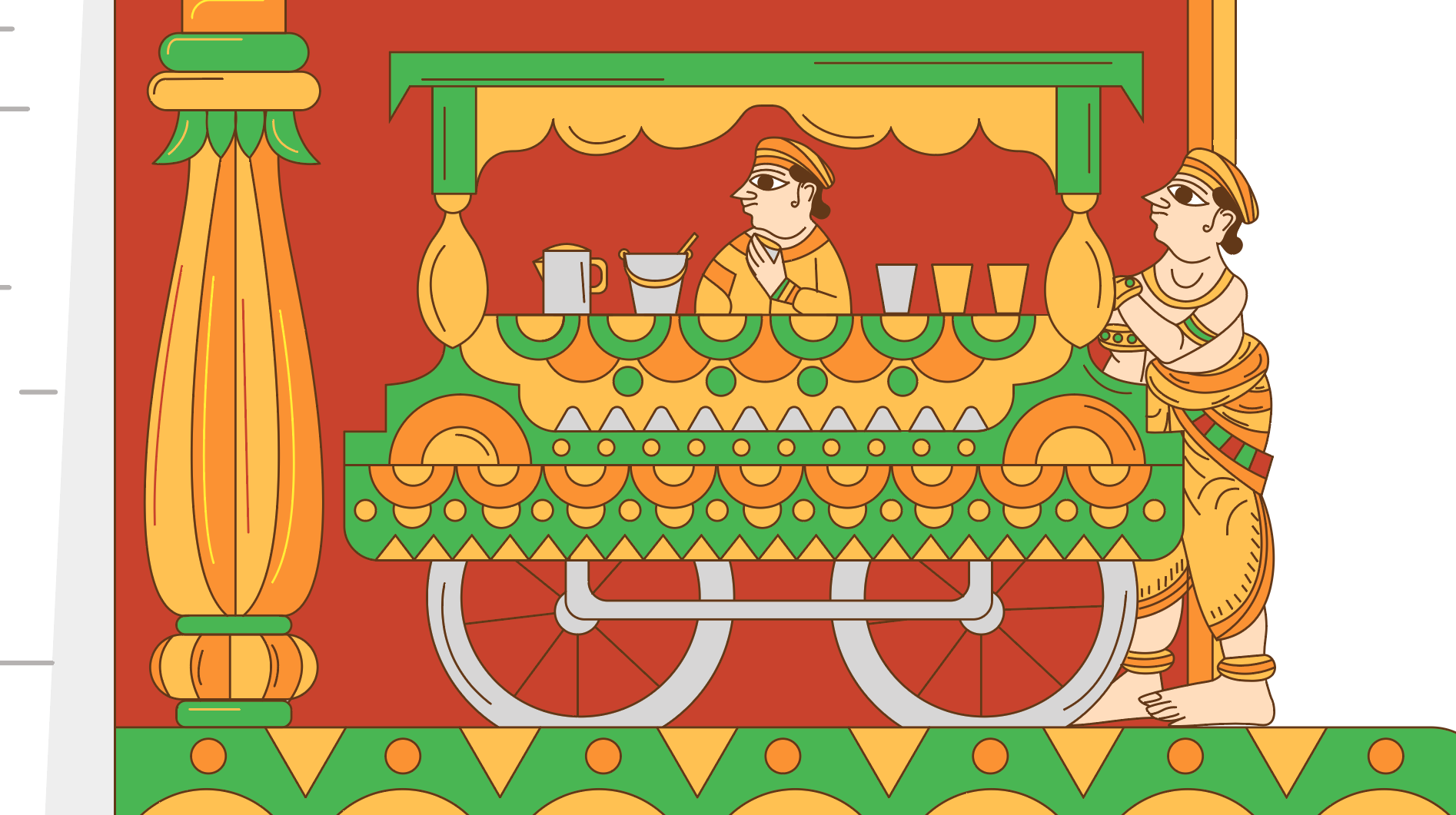 Popular Street Tea Shop of Madurai Portrayed in Cheriyal Scroll Illustrations - Roatu Tea Kadai