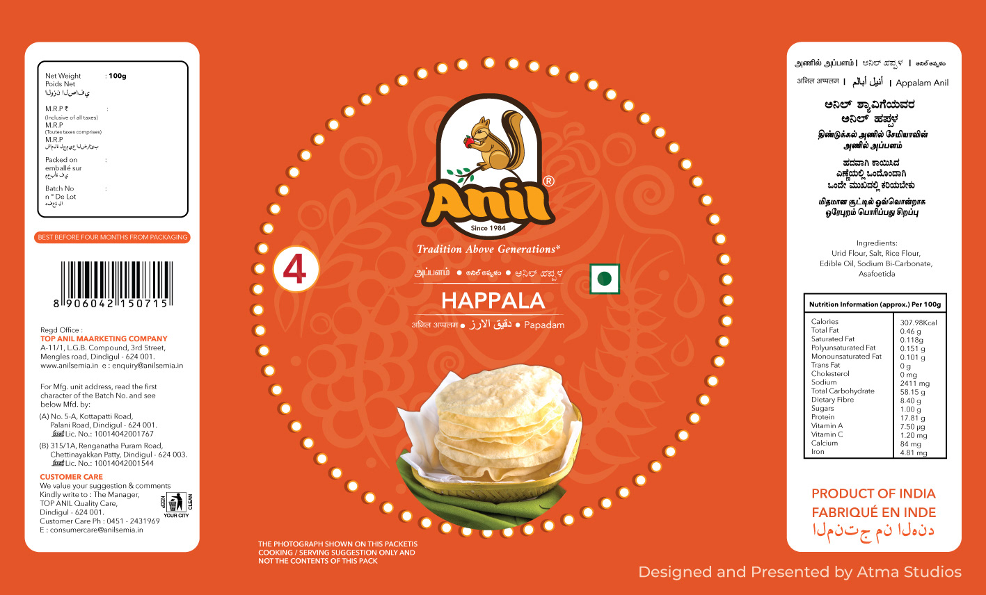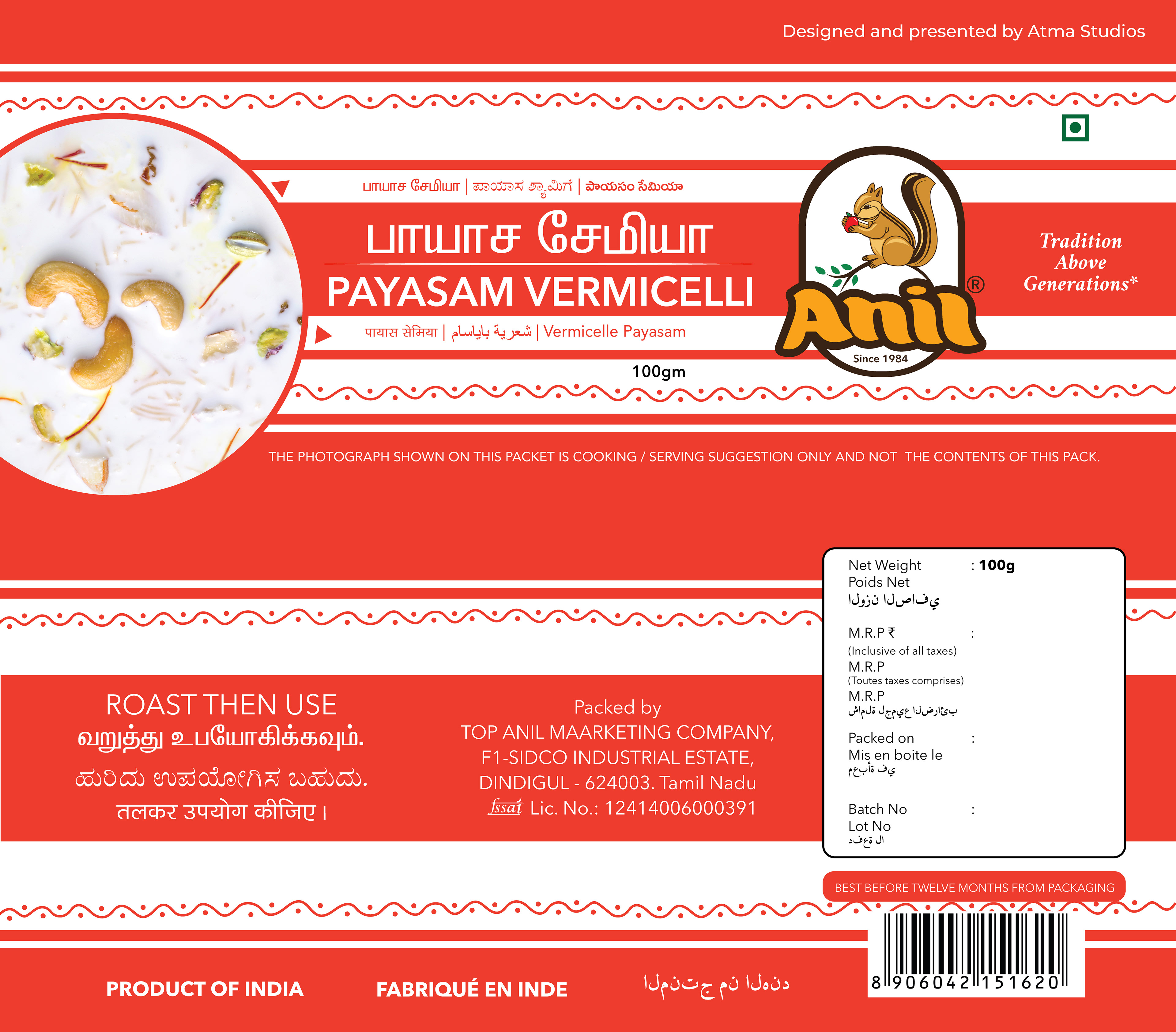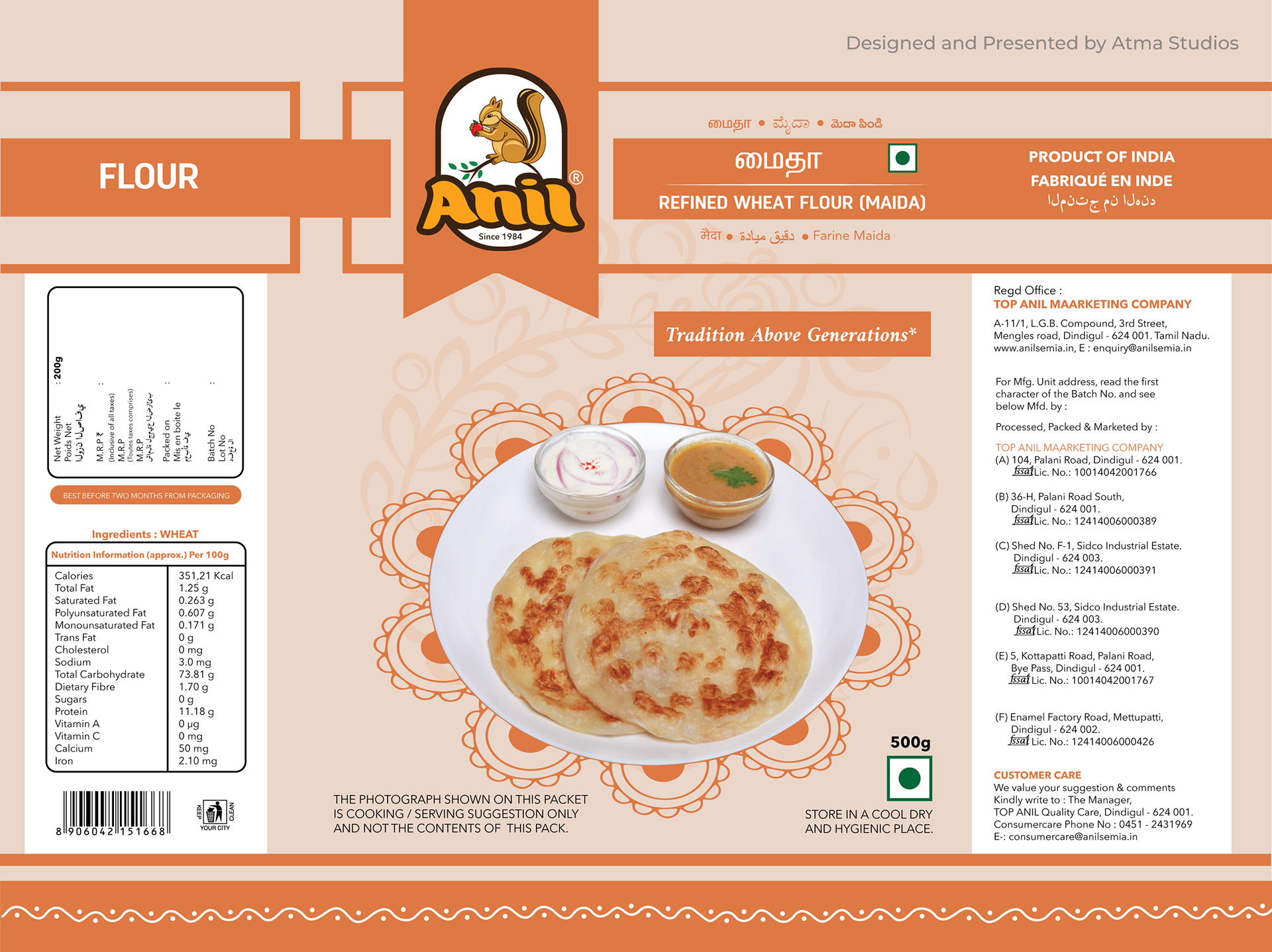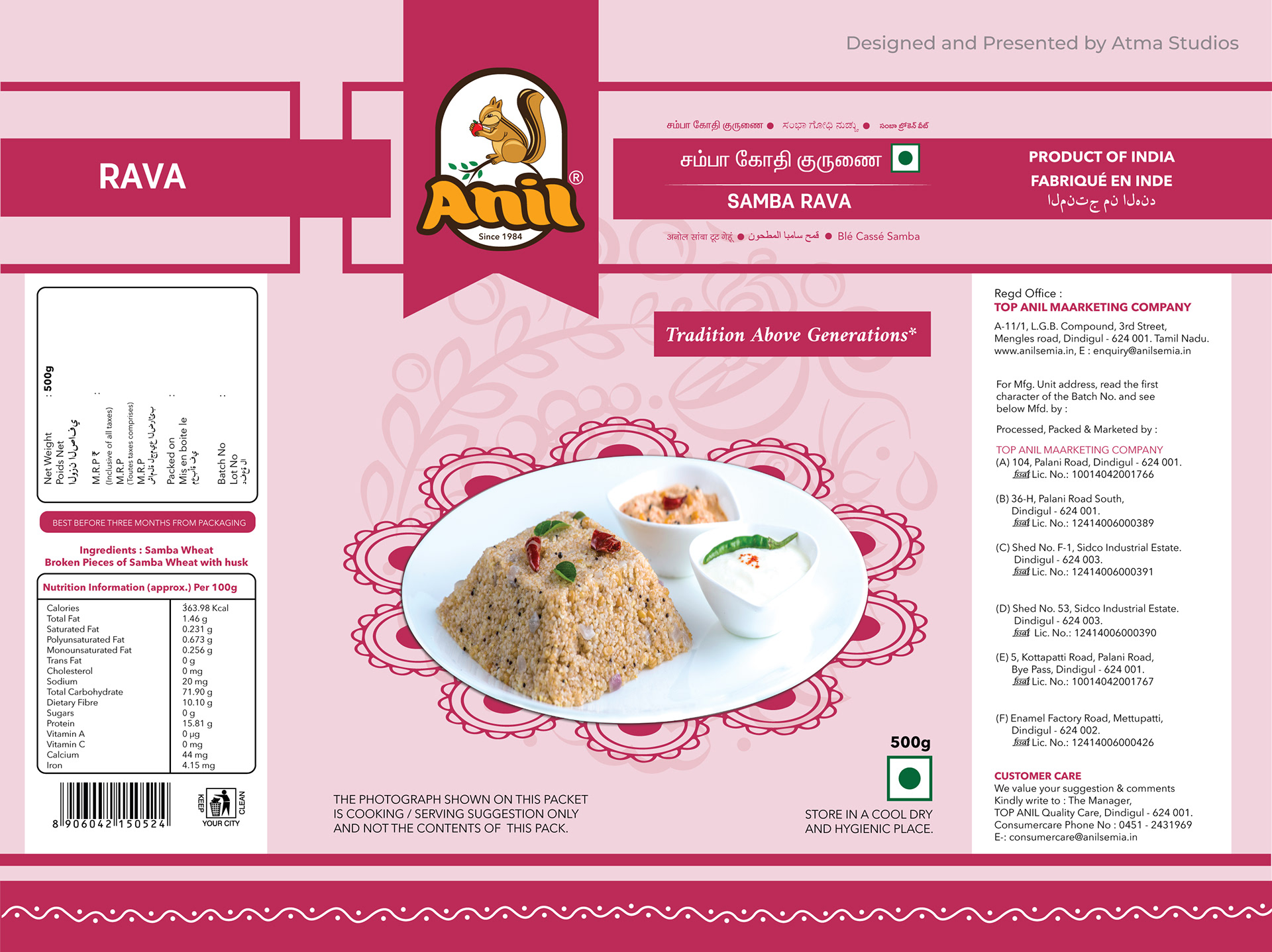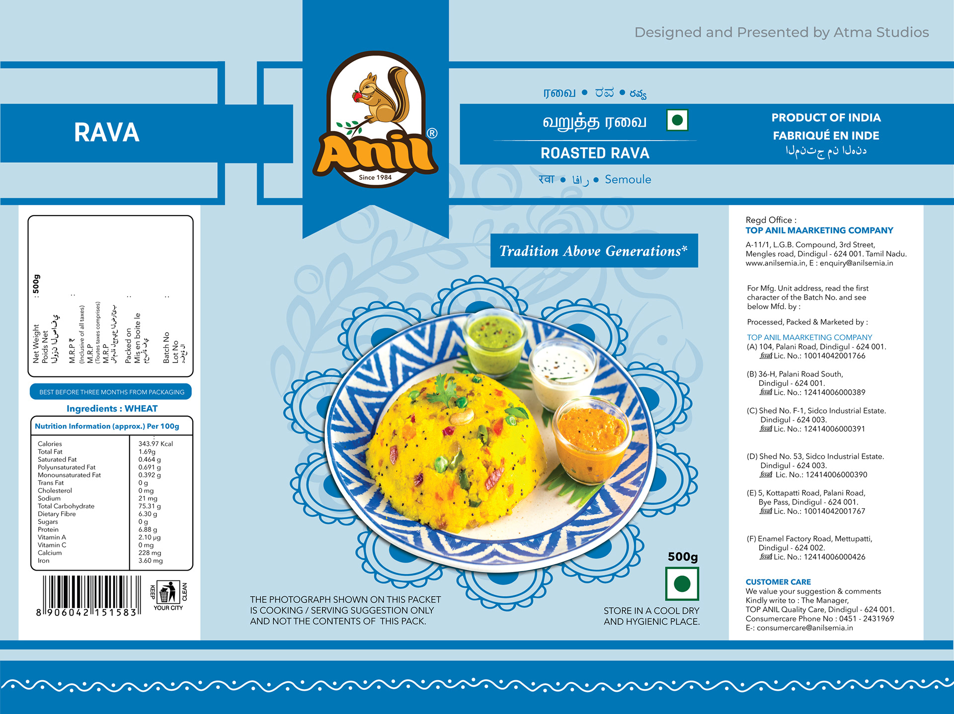 Anil Group is a beloved Indian FMCG brand rooted in tradition but thriving in modern kitchens since 1984. With a rich legacy of crafting wholesome, affordable and delicious food staples from vermicelli, rava and flour to noodles, appalam, salt and more, Anil has become a staple in households across South India and beyond, earning the trust of families and food lovers alike. For decades, Anil’s packaging has stood on shelves as a symbol of quality and reliability. In this project, we had the opportunity to reimagine the brand’s visual identity and overhaul 23 product packaging designs to better reflect the brand’s heritage while making it fresh, vibrant and contemporary for today’s consumers. Our redesign bridges tradition and modernity, celebrating Anil’s legacy while amplifying shelf presence and consumer appeal, bringing a timeless brand into a bold new era of FMCG design.