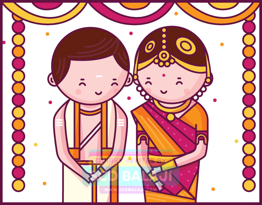 Our Bride and Groom illustrations in wedding invite is a one of a kind initiative to pay a tribute to the diverse wedding attires of our country. Every wedding attire has closely knit ties with their community, religion and place and has grandeur written all over it.