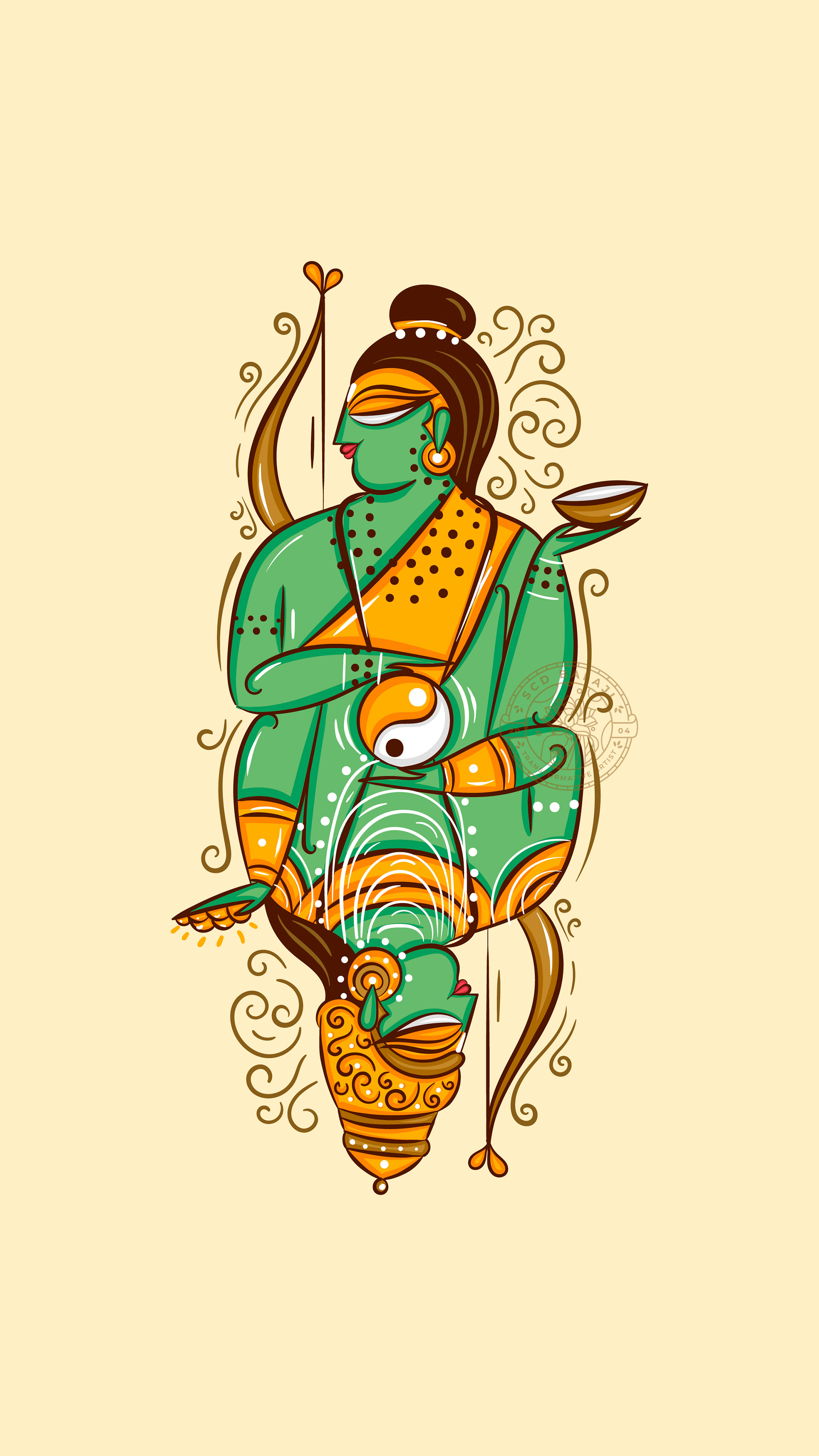 In both the glory and hardship phases of his life—as a king and in exile—Lord Ram is shown to be in a continual state of equilibrium (Yin Yang), depicted in the illustration.