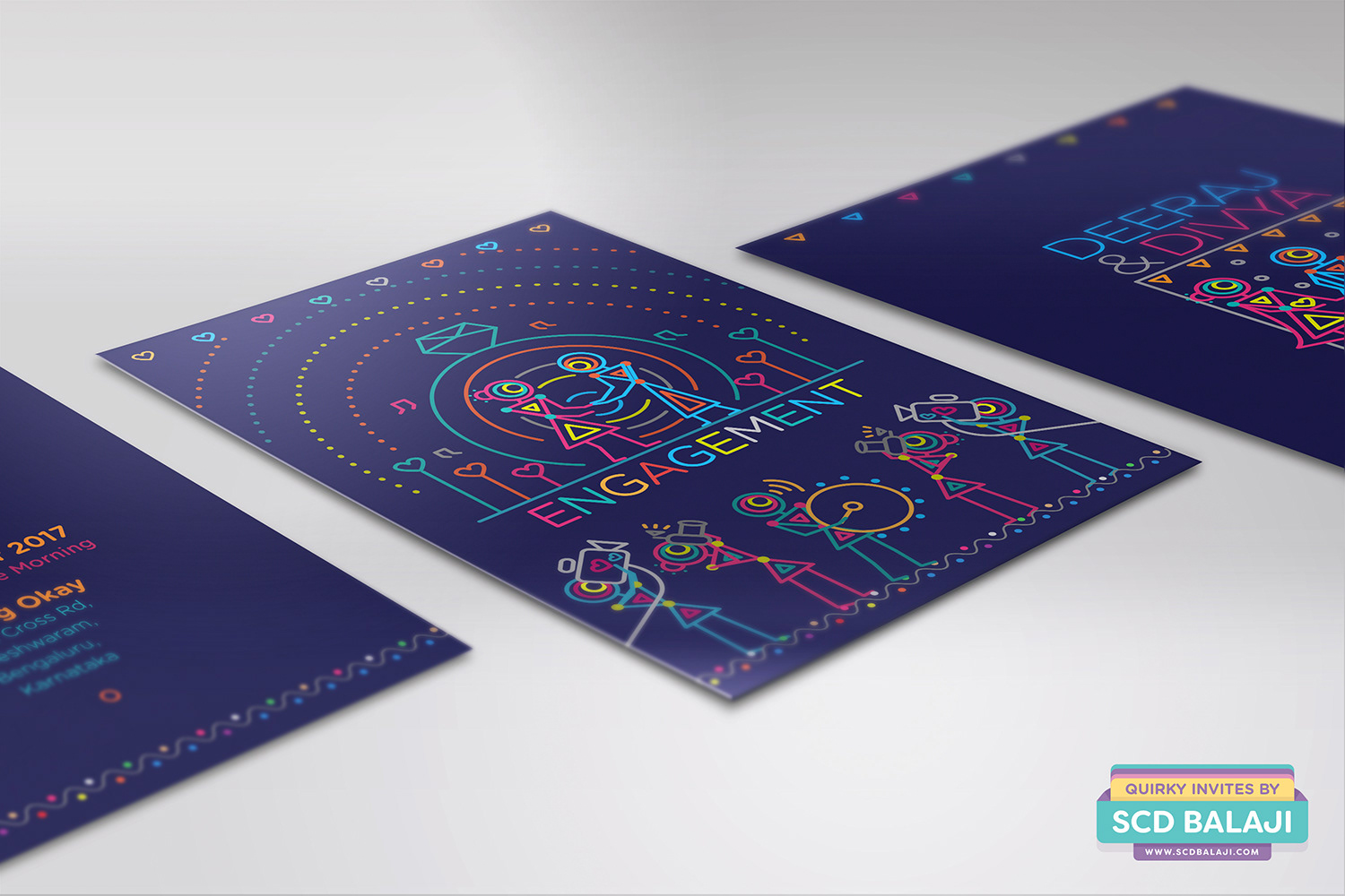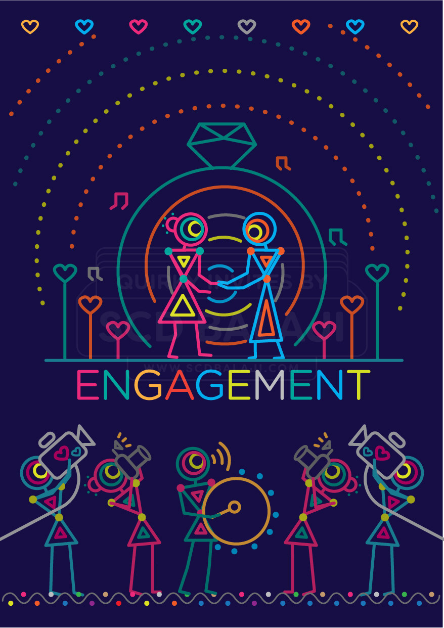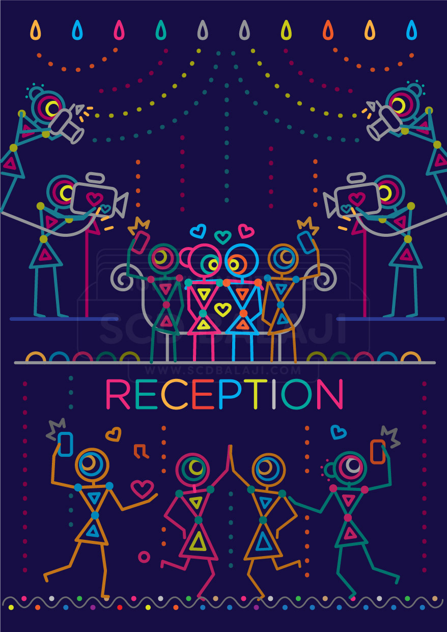 “ Unleash the power of geometry for your wedding invite “ This unique invite’s illustration style is based on Ancient Indian Iconography found in Warli, Folk Art of India. You will be surprised by the power of basic geometric shapes - circle, triangle, square which are aplenty in this invite portraying the variety of events in your big wedding. The illustrations are sure to put a smile on the faces of your dear guests. Thank us later. Indian Weddings are not just about the wedding day. It also features Engagement, Sangeet, Mehendi, Reception that play a major part in bringing happiness to all the people around you. Choose this Indian wedding invitation suite that covers it all in one go.