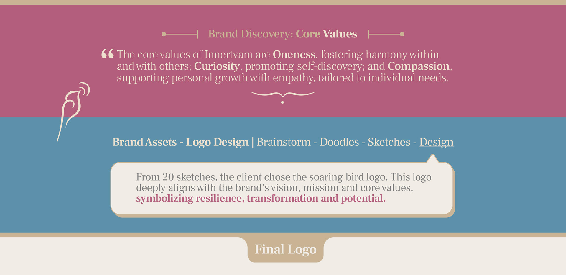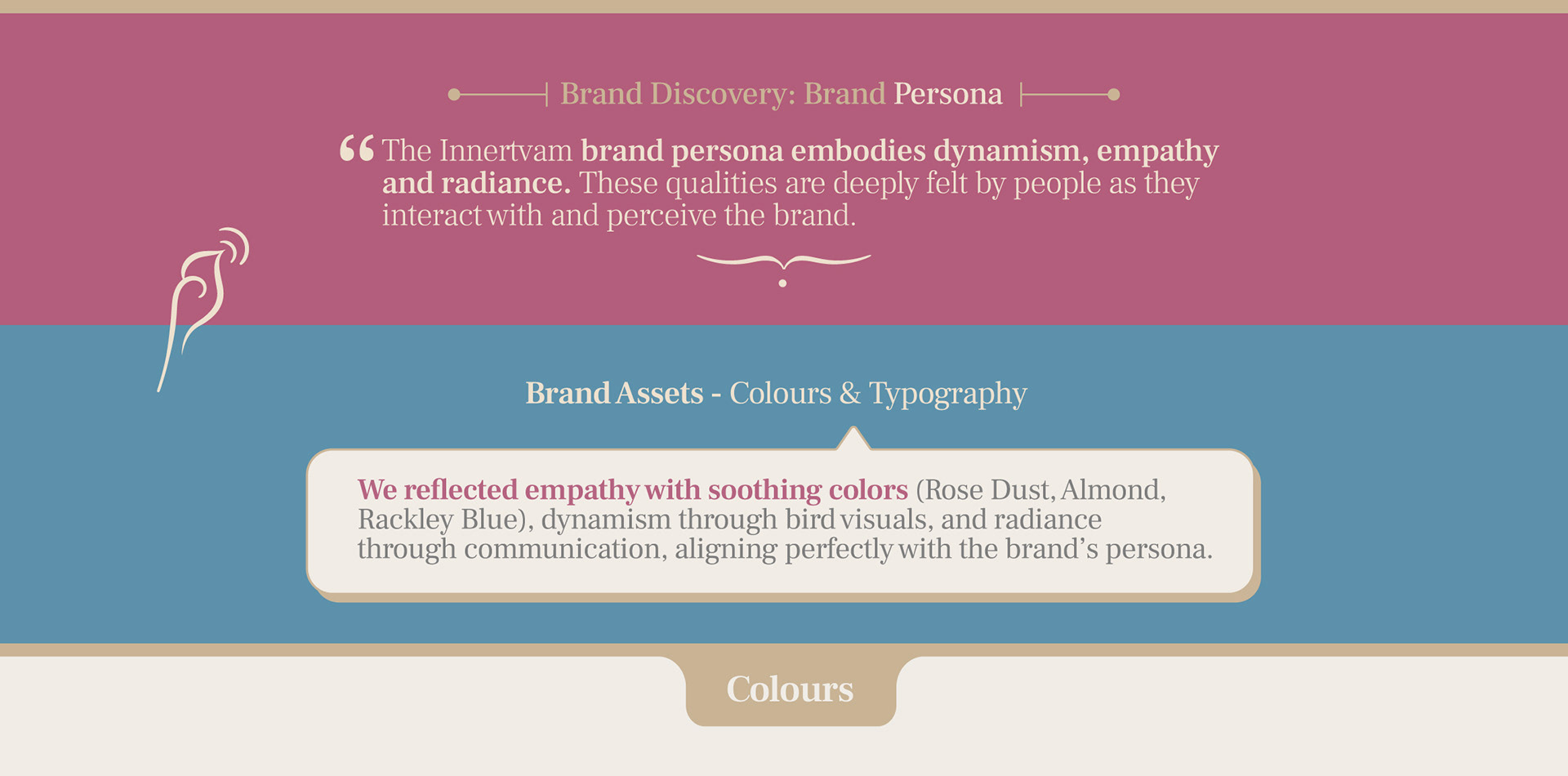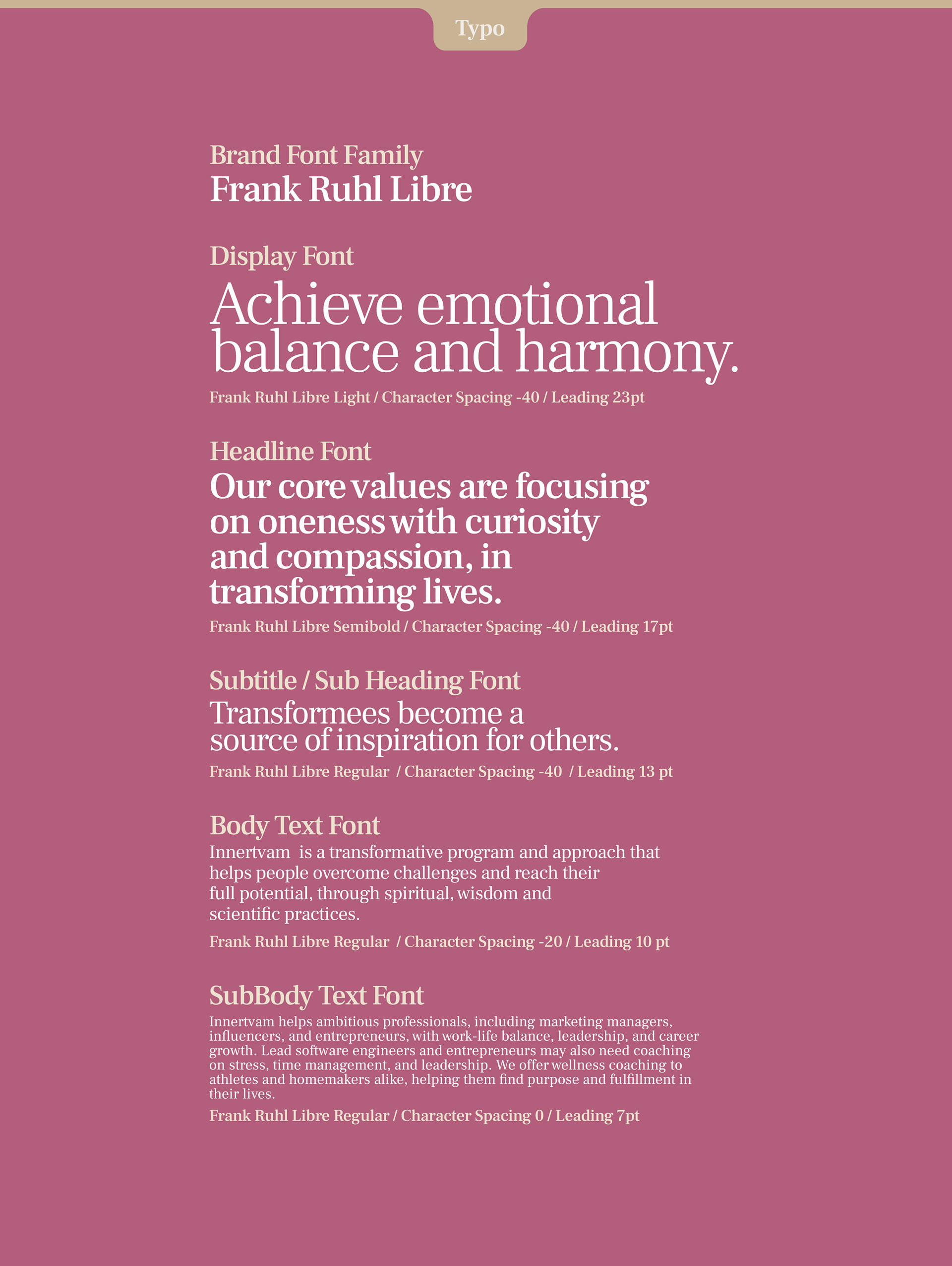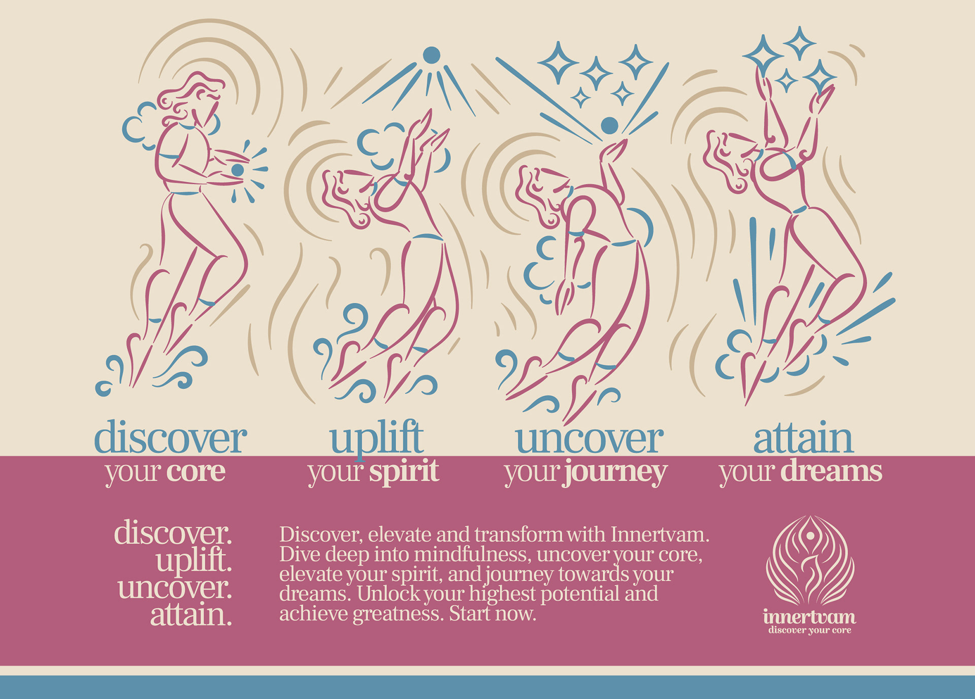 Innertvam is a life transformation program, and this project showcases a 360° brand identity design crafted to reflect its vision and purpose. The process began with brand discovery and blueprinting, laying a strong foundation for a cohesive and meaningful brand. We then developed a range of brand assets, including the logo, brand elements, color palette, typography, icons, illustrations, patterns, and illustrative lettering. Additionally, the project covered brand communication through the design of business stationery, UI/UX assets, social media templates, and photography and videography guidelines. This artistic and comprehensive identity design captures the essence of Innertvam, creating a brand that resonates with its transformative mission.