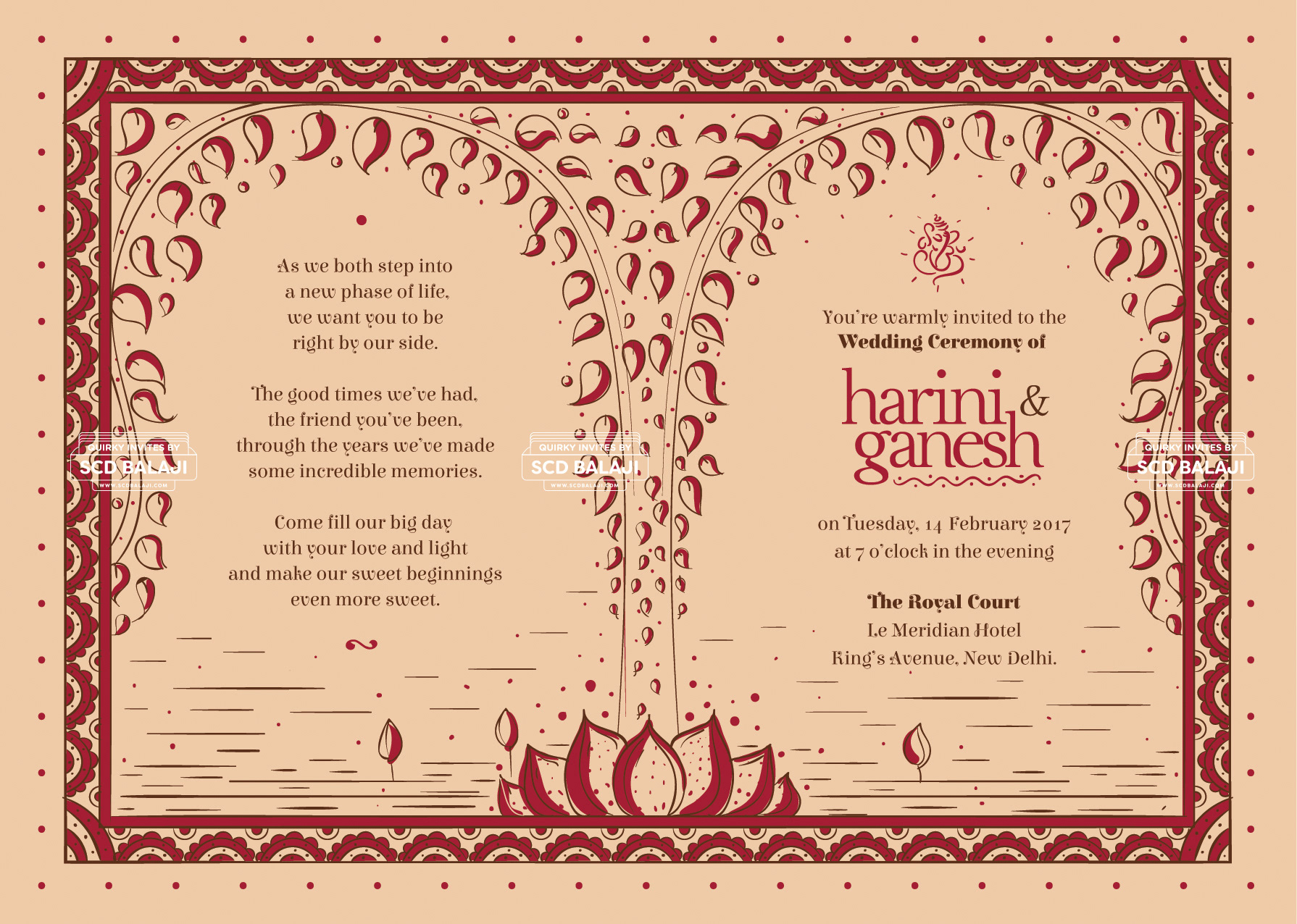 “ Invite your guests in an artistic way “ This unique wedding invite has its illustrations inspired from Ancient Indian Folk Art style Kalamkari from Andhra Pradesh. Hand drawn illustrations of peacocks and flowers gracefully depict the glory of your grand Indian Wedding. The earthen colors are sure to give the card an ethnic and handmade feel and your dear guests are sure to ask you more about this unique invite. This four page invite replete with flowers, birds and greens also doubles up as a “Save the date “ card for your big day. This Wedding invite illustrations are very close to the nature and it will act as an agent of happiness when you hand them.