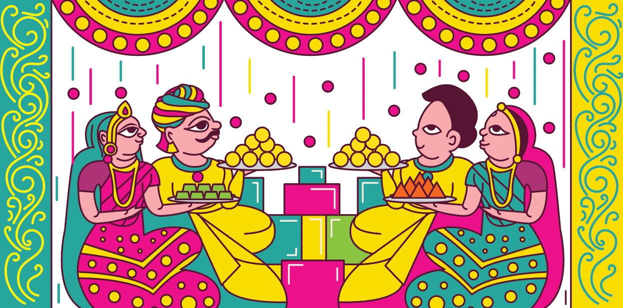 Indian Parents Exchanging Sweets for the Wedding Engagement