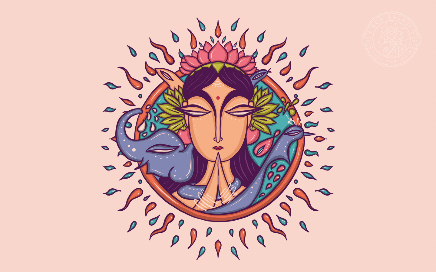 She, an oasis of purity, rebirth and transformation, mother of all manifold forms of life bows down to the Ultimate Power that oversees cosmic evolution.