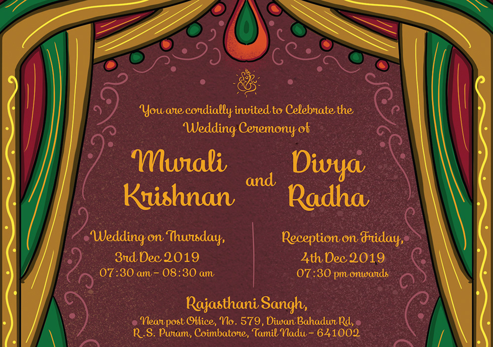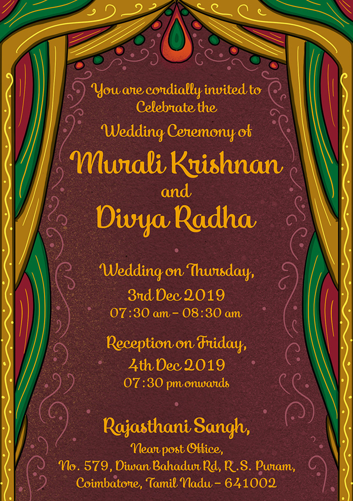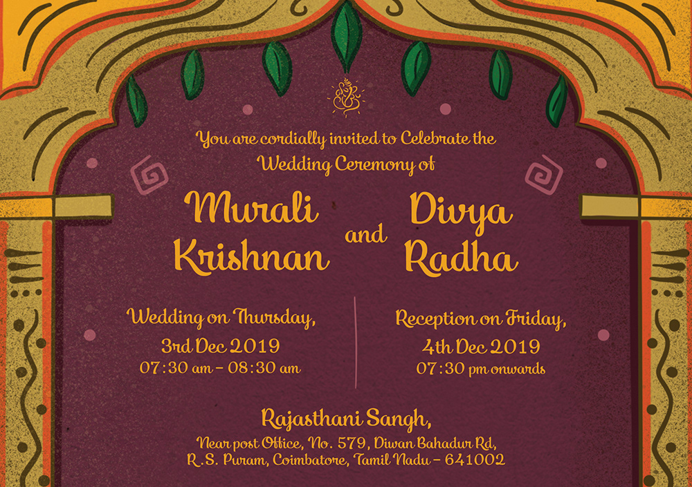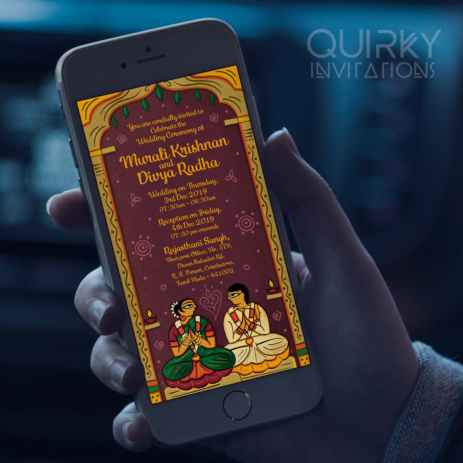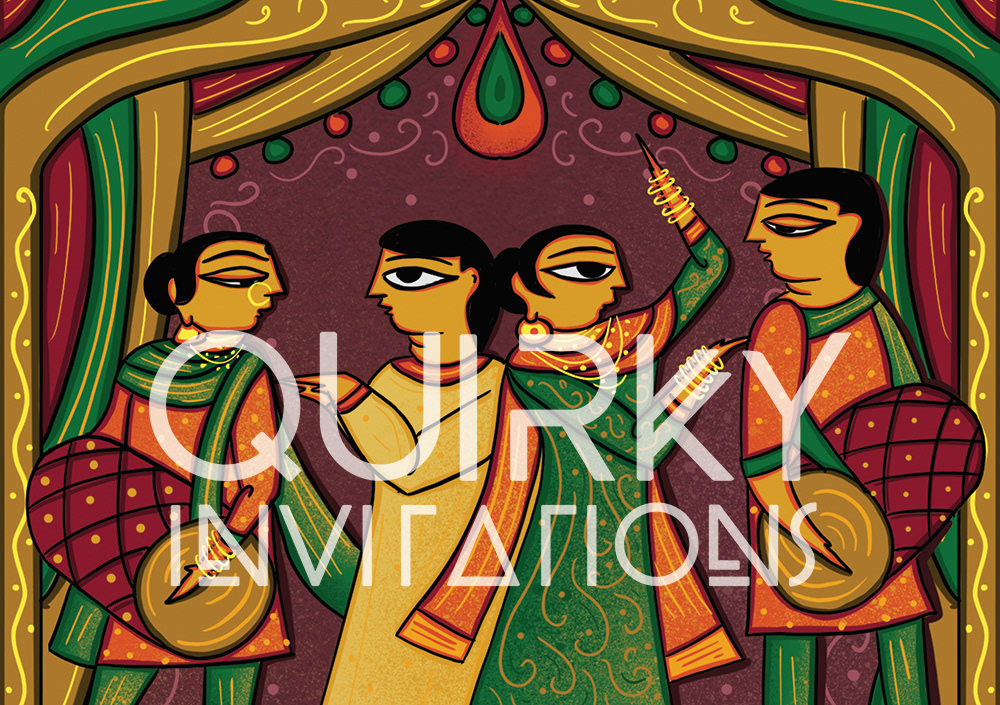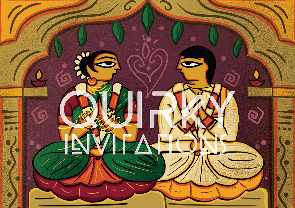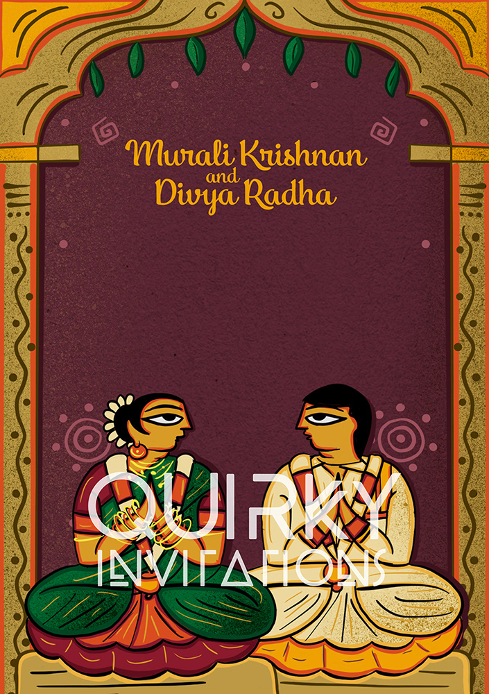 An Indian Wedding Invitation suite inspired from Centuries Old Benga Patua Illustrations of Ancient India. Neo Patua is a contemporary illustration style sculpted by SCD Balaji, Indian Illustrator. It is an initiative to elevate Indian Folk Art to the world.